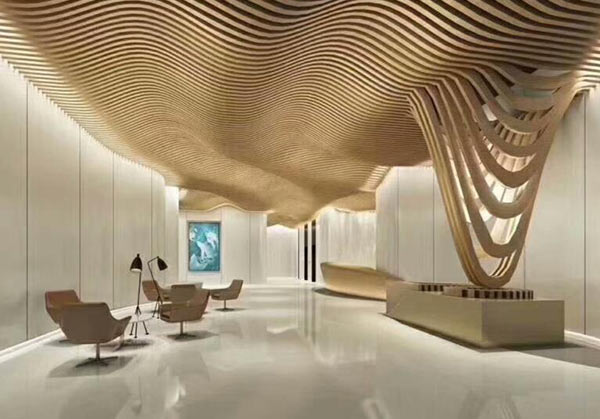 人行天橋、電梯包邊、陽臺包裝、廣告指示牌、室內異形吊頂等裝飾。鋁單板的形式多種多樣:有氟碳幕墻鋁單板、吊頂鋁單板、雙曲鋁單板、沖孔異形鋁單板、仿古銅拉絲鋁單板、藝術雕花鋁單板等。幕墻是建筑物的外圍護墻,一般不承重,像幕布一樣掛上去,所以,又被稱為懸掛墻。是現在大型建筑和高層建筑常用的帶有裝飾效果的。